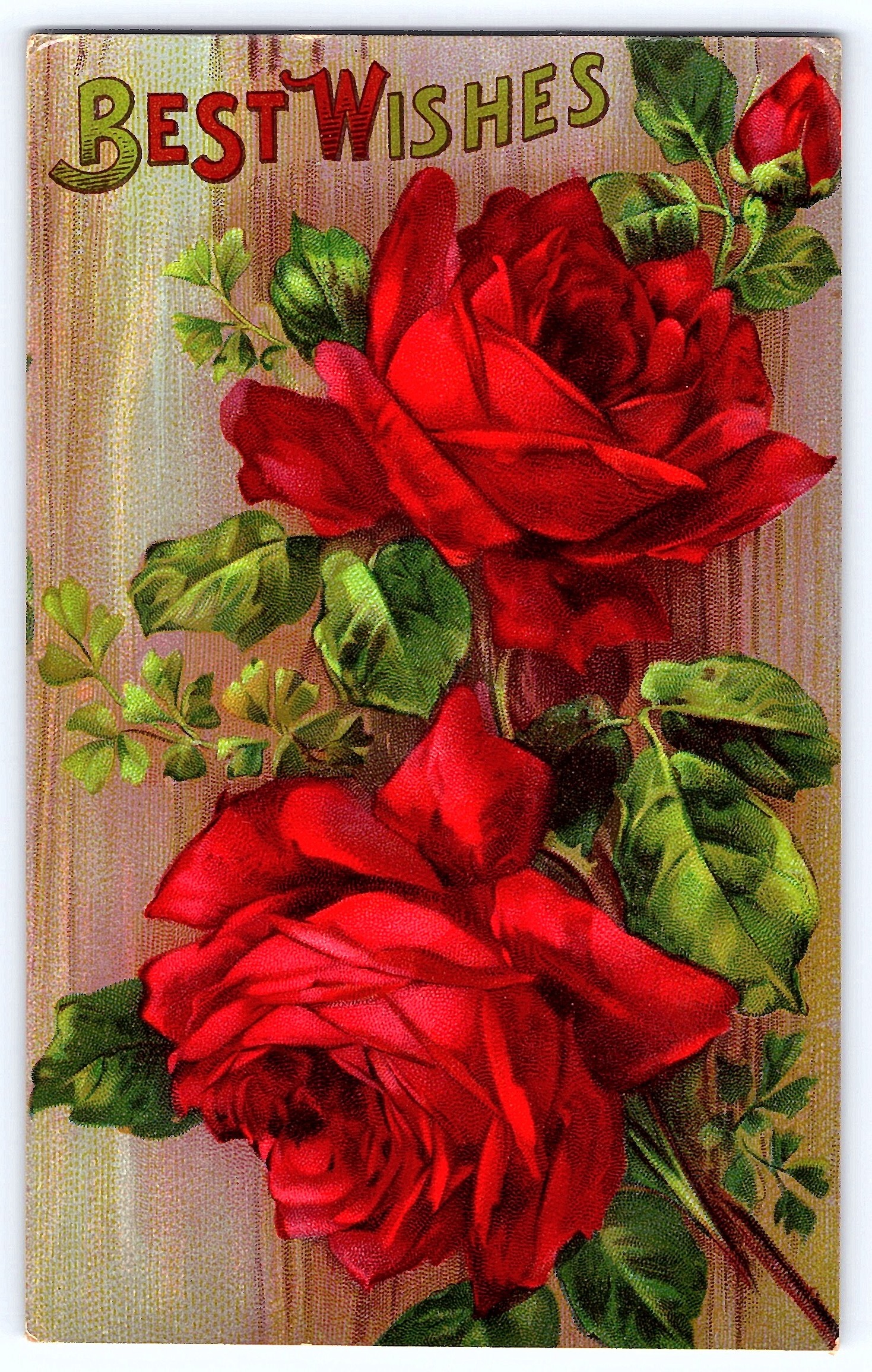 This divided back postcard, printed in Germany, features a vibrant illustration of red roses with the words 'Best Wishes' prominently displayed. The lush, detailed artwork is characteristic of early 20th-century postcards, capturing the elegance and sentimentality of the era. The card is part of Serie 5100, showcasing the high-quality printing techniques used in Germany during this period.